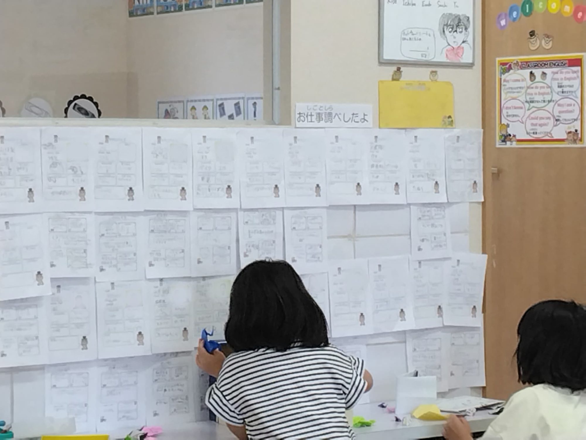 今月は4月の自己紹介カードで考えてもらった「将来の夢」についてもっとくわしく調べたり書いてもらいました!