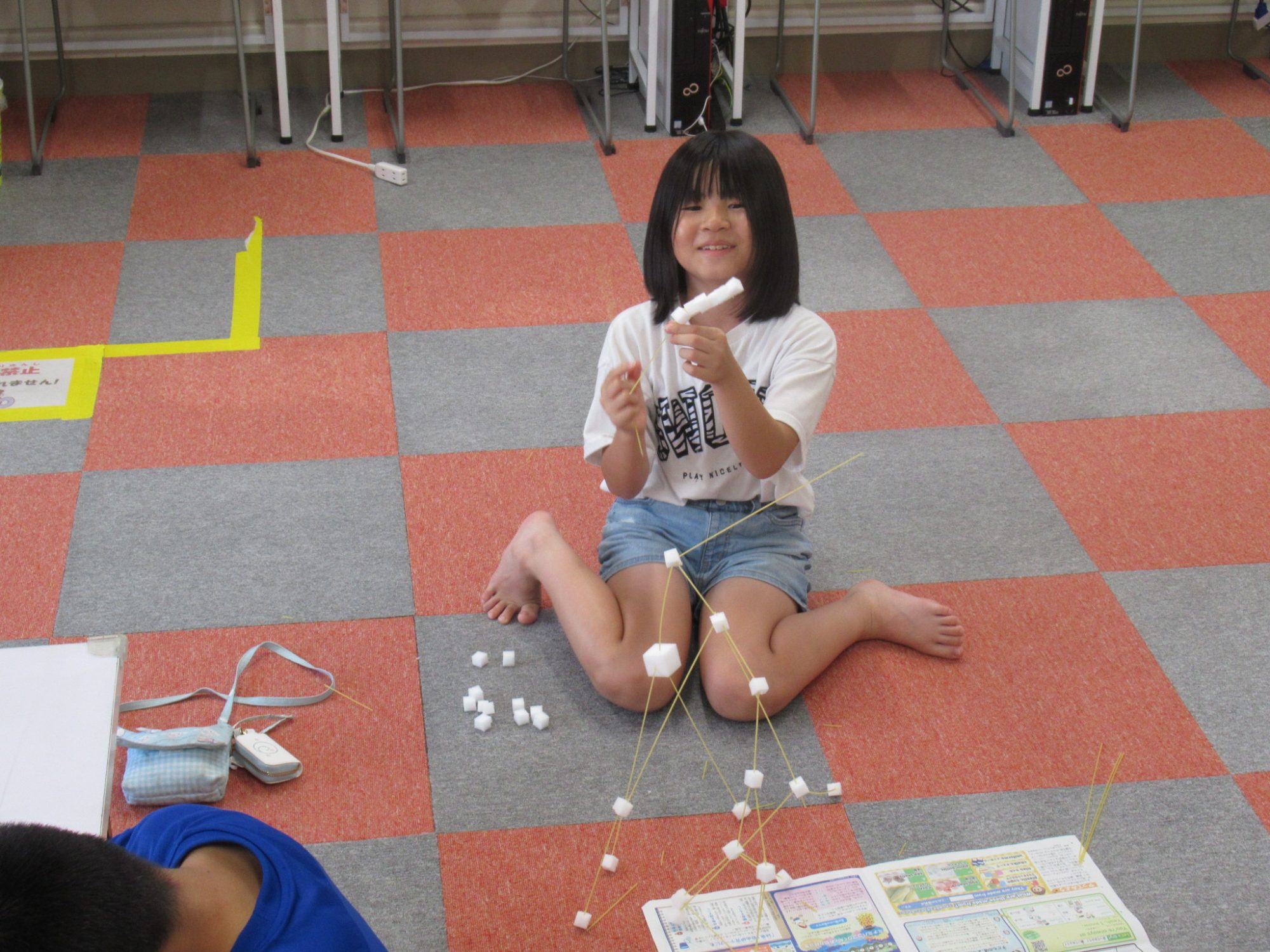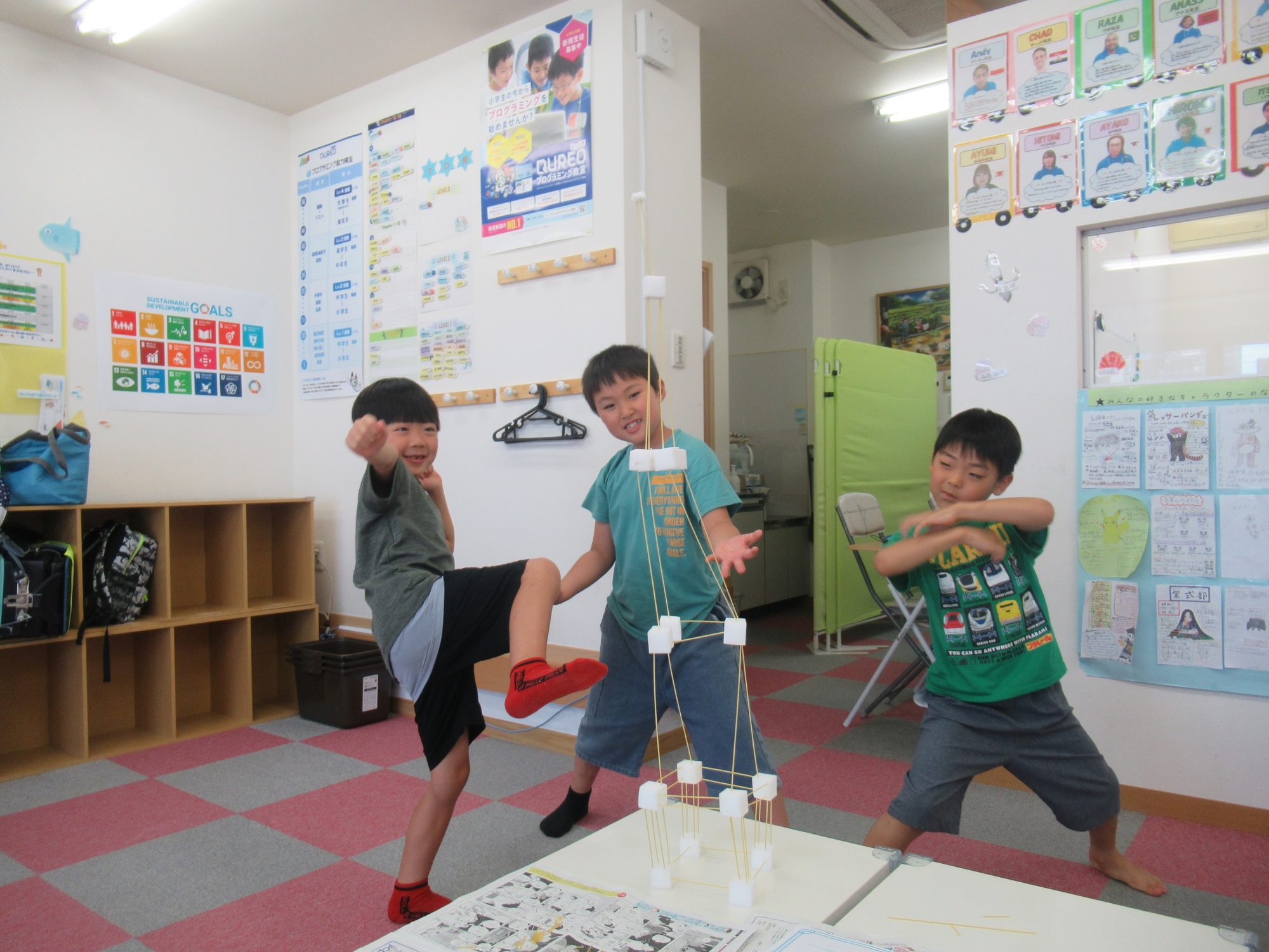 パスタやスポンジを使ってどれだけ高く積めるか頑張ったね!🗼✨