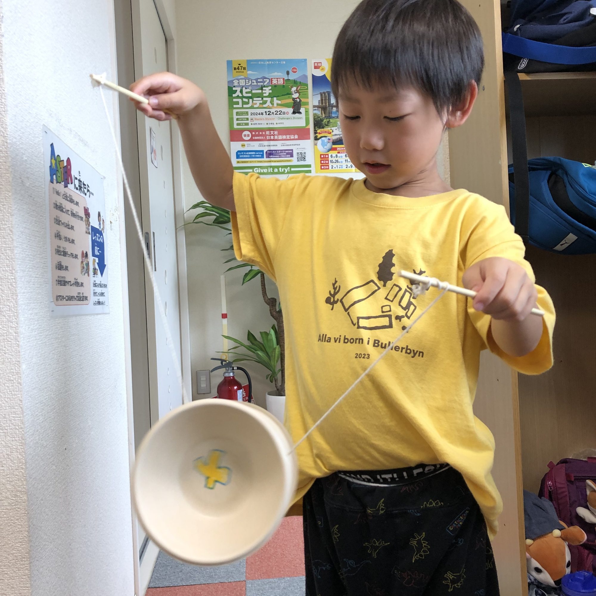 2週目は個人で作ってもらう週になります。中国ゴマと紙トンボフリスビーを作ってもらいました!